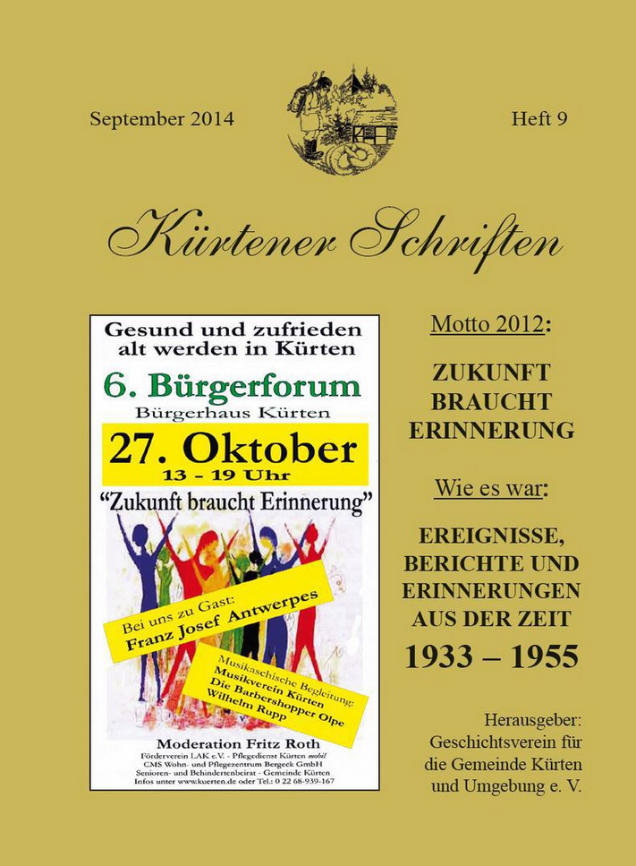 Der Geschichtsverein Kürten veröffentlicht die Ergebnisse seiner Arbeit in einer eigenen Publikationsreihe. Seit 1997 erscheint alle zwei Jahre ein Band der Schriftenreihe "Kürtener Schriften". Beiträge über das Leben der Menschen in früherer Zeit, aber auch aktuelle Ereignisse werden vorgestellt. Es ist ein erklärtes Ziel, dem interessierten Bürger und Bürgerinnen die Entwicklung der Region nahe zu bringen und auch den Neubürger und Neubürgerinnen an die Wurzeln seiner neuen Heimat heranzuführen.